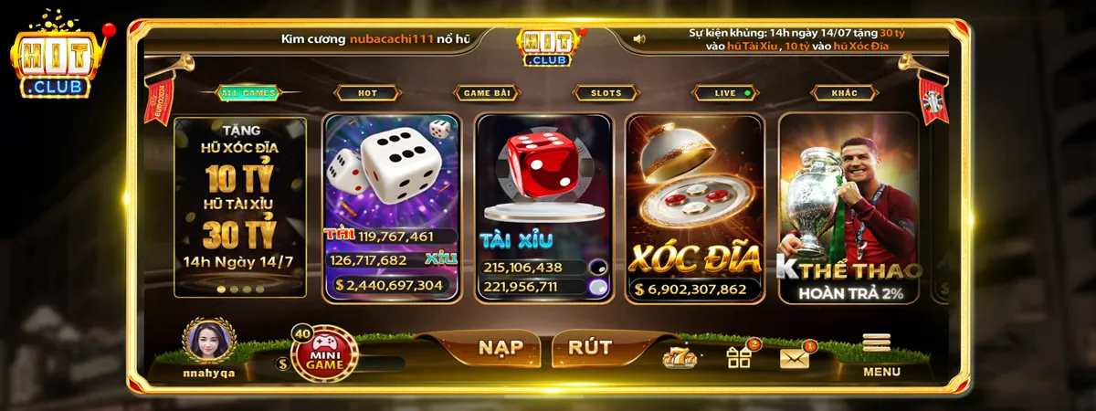 HitClub nạp rút nhanh chóng, nói không với tiền phí